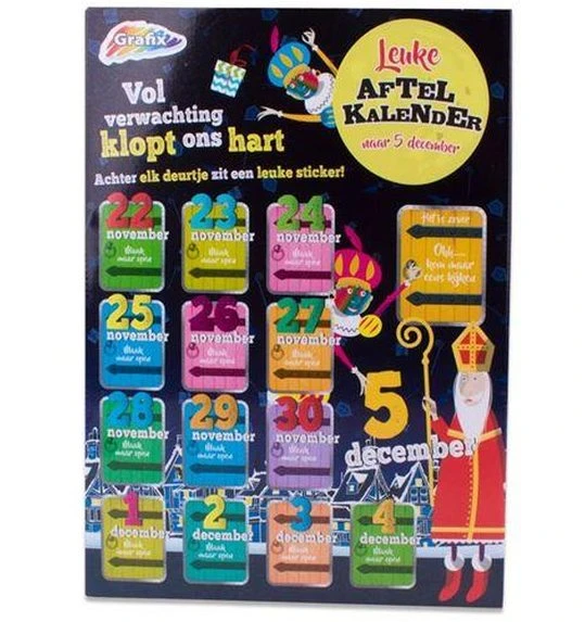 : Vol verwachting klopt ons hart… Leuke aftelkalender voor Sinterklaas! Achter elk deurtje zit een andere leuke sticker. |