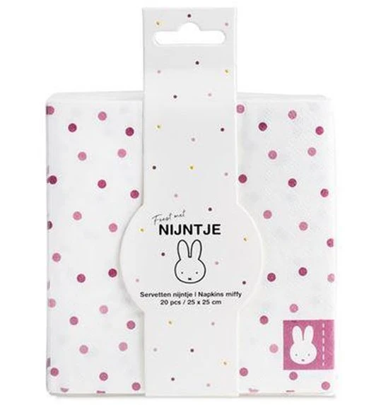 : Papieren servetten Nijntje babyroze. De servetten hebben een uitgevouwen maat van 25x25cm en zitten per 20 stuks verpakt. |