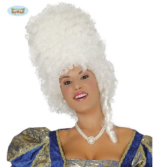 : Witte hoge Barok pruik voor dames. Witte Barok pruik voor dames. Hoge witte pruik met getoupeerde krullen voor dames. |